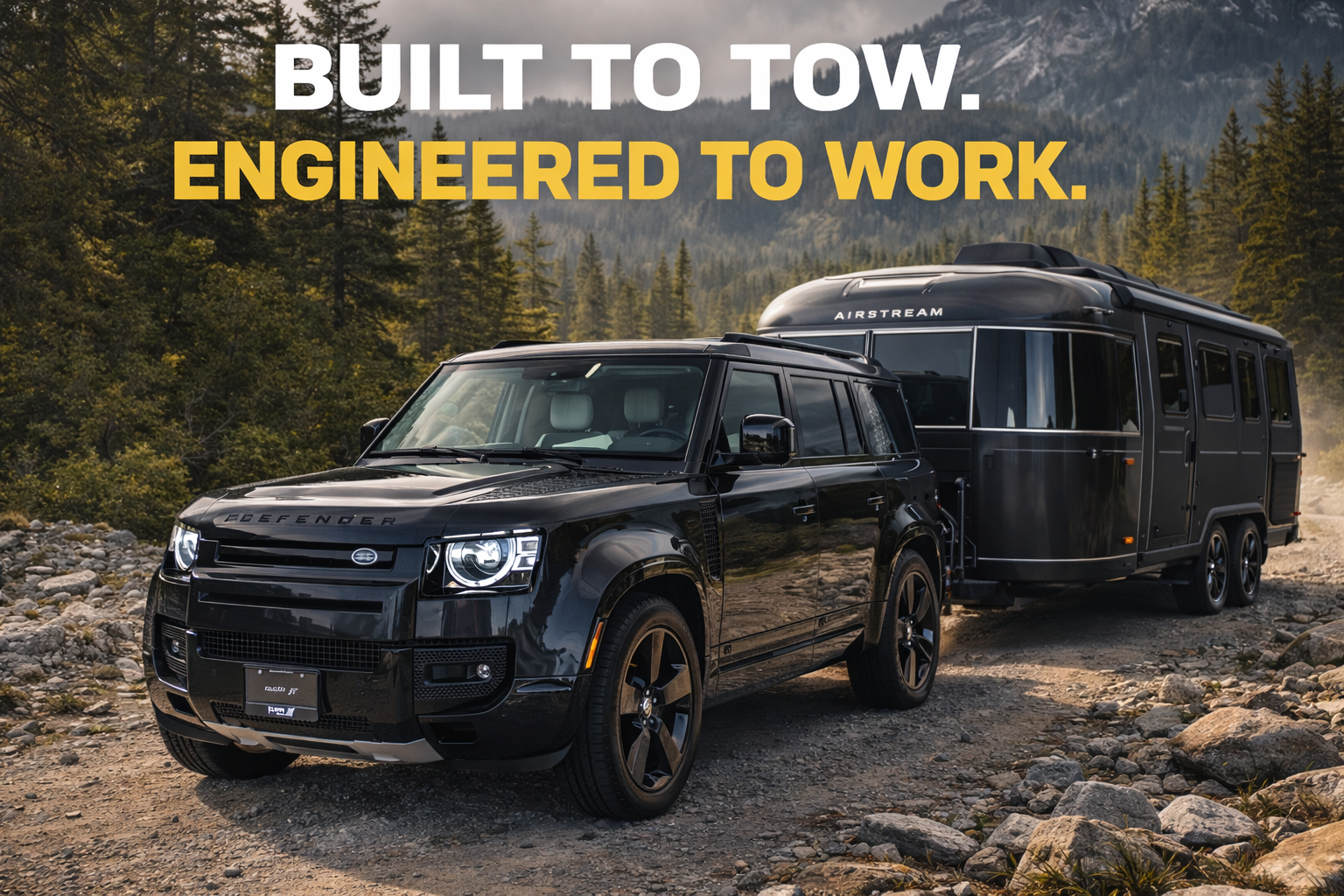 The integrated tow systems, rigid architecture, intelligent all-wheel drive, and advanced stability control work together to keep the vehicle composed. When properly configured with the factory tow package and trailer brake setup, the Defender does not strain. It settles in and pulls with confidence.