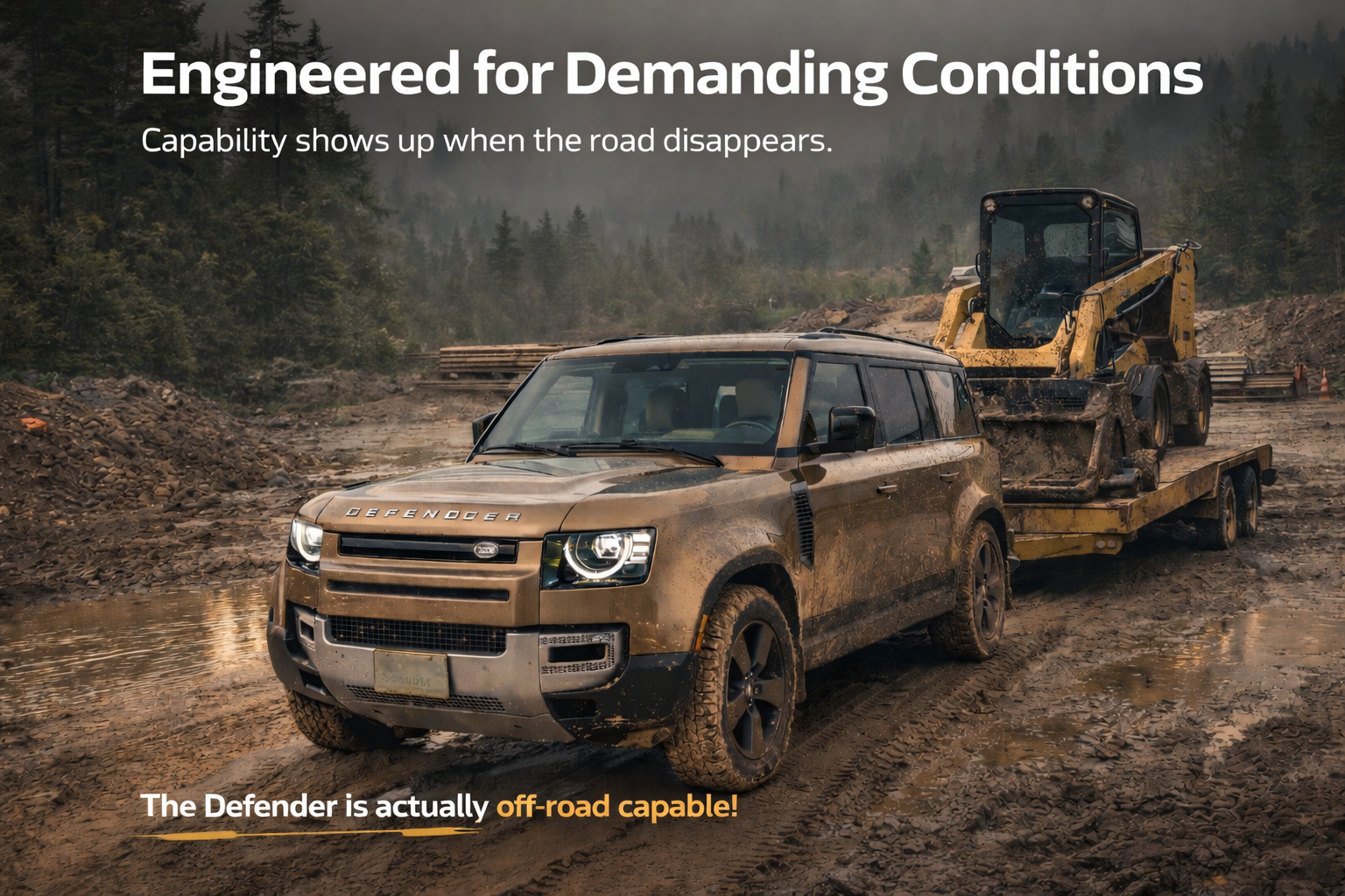 Owners who tow often also travel beyond pavement. Campsites, job sites, cottages, remote properties, rural backroads. The Defender is built for those transitions without compromise.